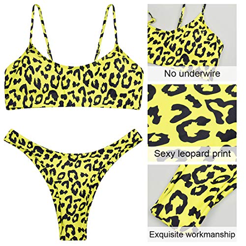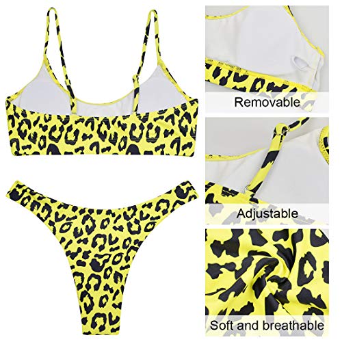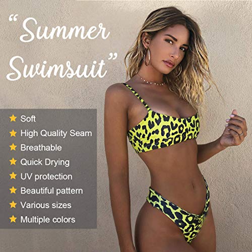 - Diseño: Bikini con estampado de leopardo con tirantes ajustables, con bikinis de costura fina, pierna de corte alto, cobertura atrevida brasileña, almohadillas en el pecho sin respaldo y desmontables. Te permitirÔ sentirte cómodo y lucir elegante y encantador.