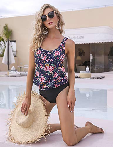 Hawiton Tankini para Mujer Traje de BaƱo de Dos Piezas Tirantes Ajustables Tops Tankini con Breifs, DiseƱo de Flores BaƱadores para Playa, Piscina, Vacaciones