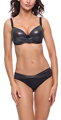 Merry Style Conjunto Bikini Sujetador y Bragas BaƱador 2 Piezas Traje de BaƱo Mujer P65425EB (Negro Brillo, EU (75 E/38) = ES (90 E/40))
