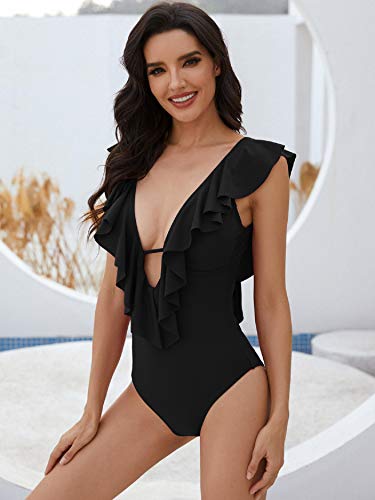UMIPUBO Trajes de BaƱo Una Pieza BaƱador Alta Cintura Push Up Trajes de BrasileƱo Conjunto de Bikini para Mujer Volante Cuello en V Fruncido Bikini Sets Bikini Natacion