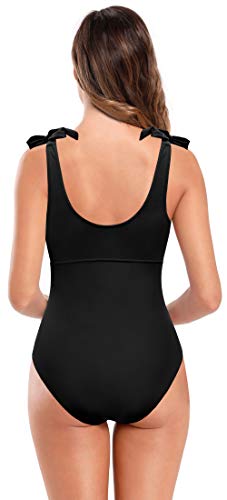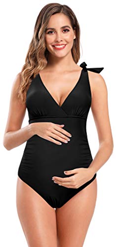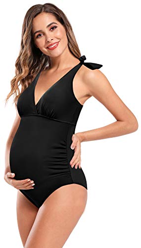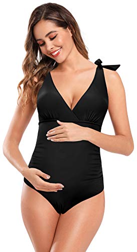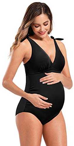 SHEKINI BaƱador de Una Pieza Maternidad Mujer Cuello en V Correa de Hombro Ajustable Ties up Sin Espalda Tallas Grandes Ruched Una Pieza Trajes de BaƱo Bikini para PremamƔ Mujeres (Negro, XL)