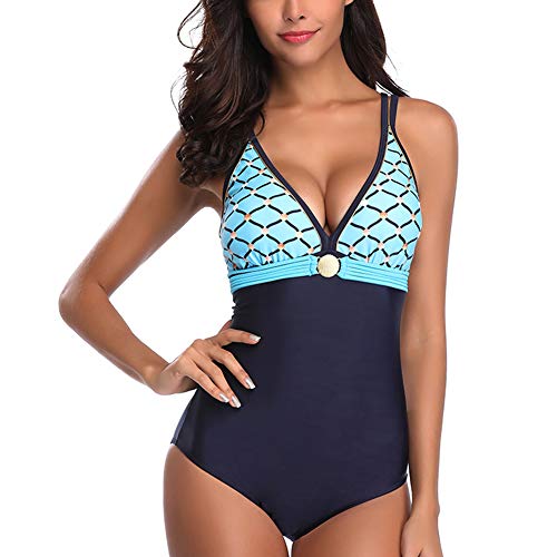 Traje de BaƱo Mujer una Pieza Sexy V-Cuello BaƱador Natacion Tallas Grandes Push Up Trajes de BaƱo Monokini Azul XL