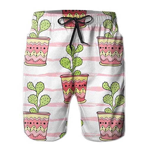 Bañador para Hombre Cactus Patrón Colorido Dibujos Animados Rosa Rayas Blancas Surf Tabla de Playa Shorts Traje de baño