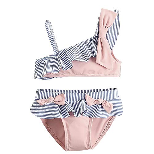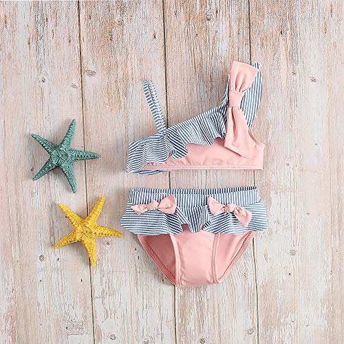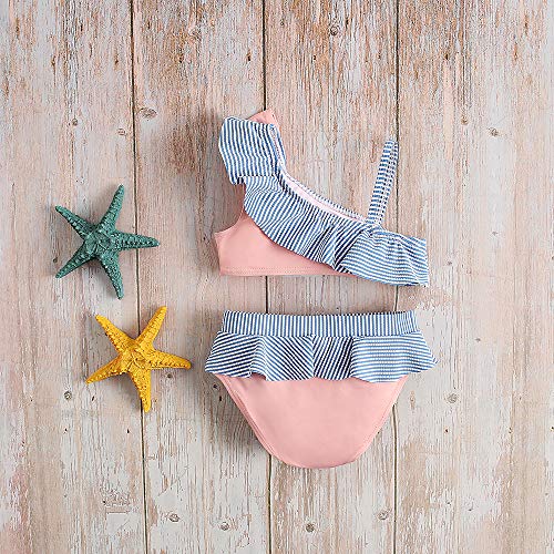 MSemis Traje de BaƱo SandĆa Rayado para BebĆ©s NiƱas BaƱador con Volantes Ropa de Playa Bikinis Conjunto Rosa y Blanco 2-3 AƱos