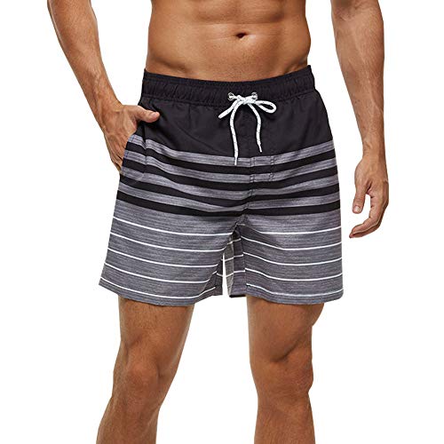ZHYIF de los Hombres Negro Blanco Rayas Ligero Secado rƔpido Trajes de baƱo Tropical BaƱador Nadar BaƱador Trajes de baƱo con Forro de Malla Xlarge