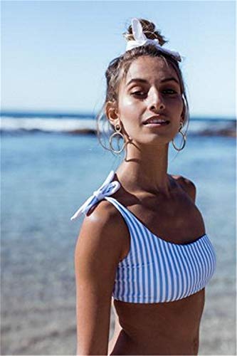 heekpek Bikini Trajes de baƱo a Rayas con un Hombro Pajarita Cintura Alta Tanga Lado Anudado BaƱador Atractivo de Dos Piezas Sexy Trajes de baƱo