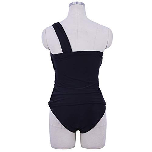 JURTEE Traje De BaƱo para Mujer Bikini con Pliegues Tankini De Dos Piezas Un Hombro Ojo De La Cerradura Bikini con Cintura Baja (L, Negro)
