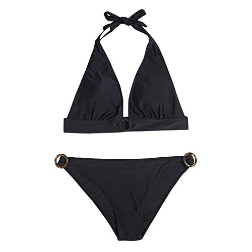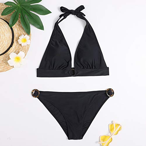 JURTEE SiamƩs Solid Color Bikini Monokini Push-Up Pad Trajes De BaƱo De Una Pieza Slim Fit Ropa De Playa para Mujer (S, Negro)