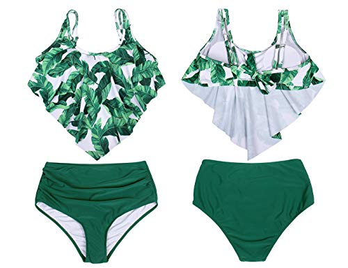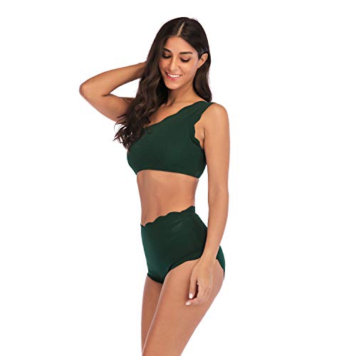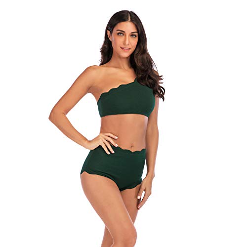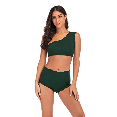 TSWRK Guisado Al GratƩn Corte Alto Vendimia Uno Hombro Dos Piezas Trajes de BaƱo Conjunto de Bikini (Verde, L)