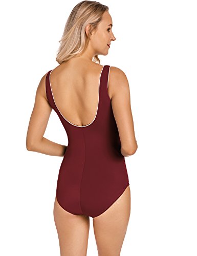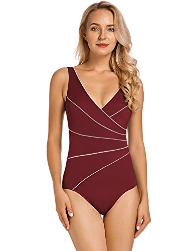 DELIMIRA - BaƱador a Rayas Escote en V Traje de BaƱo de Una Pieza para Mujer BorgoƱa 44