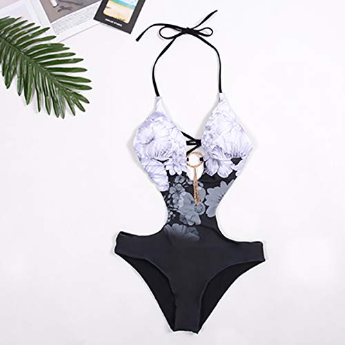 BaƱadores Mujer Halter Escote V Espalda Descubierta Leopard Trajes de BaƱo de Una Pieza Bikinis Tallas Grandes Trikini BaƱador Moldeador Vientre Plano Push Up Piscina Surf Banadores de SeƱora M