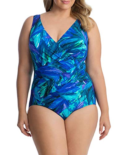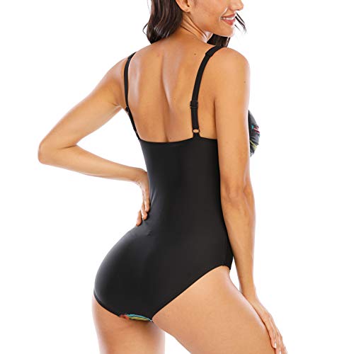 WIN.MAX Traje de baƱo Acolchado para Reducir Barriga, Traje de baƱo de Talla Grande para Mujeres Monokinis Vintage Push up (Negro&Verde, EU42)