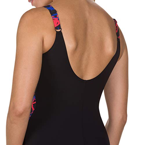 Speedo Lunalustre De 1 Pieza Bañador, Mujer, Tranquil Shn Blk/Chrmblu/, 34 (ES 40)