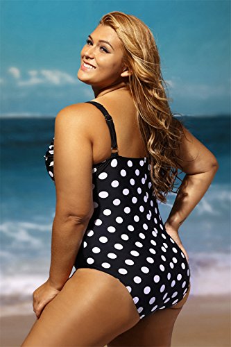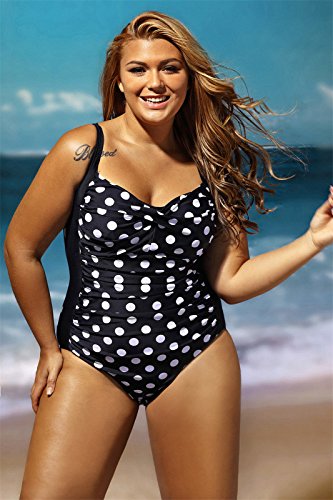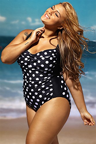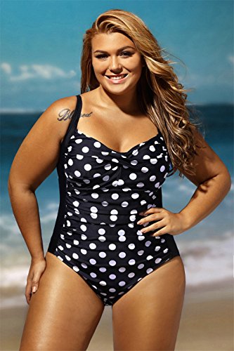 - Moda One Piece 1 PC Plus Size Sleeveless Adjustable Shoulder Straps Strap Ruched Padded Cups Polka Dot Printed Pattern Siamese Piece Swimwear Swimsuit Bathing Suit Beach Wear Beachwear Swimming Suit Monokini.