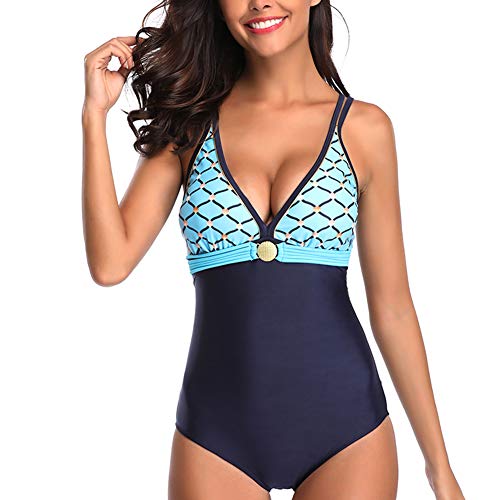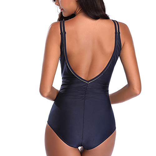 Traje de BaƱo Mujer una Pieza Sexy V-Cuello BaƱador Natacion Tallas Grandes Push Up Trajes de BaƱo Monokini Azul 3XL