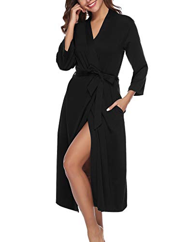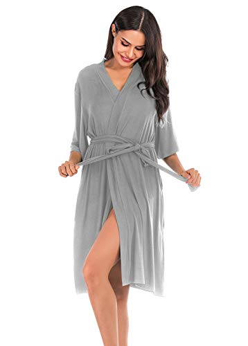 - 【Bata ligera y suave】95% Modal Cotton, 5% Spandex. Amigable con la piel, permeabilidad al aire y absorbente. Esta bata ligera le proporcionará una comodidad óptima después del baño o antes de acostarse.