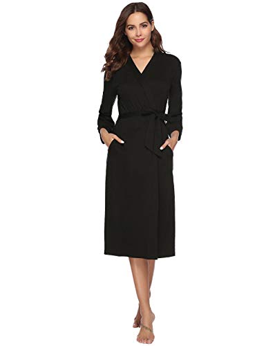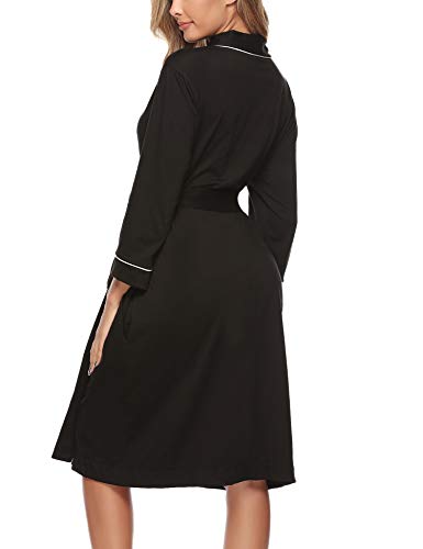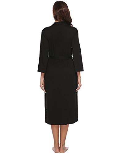 Abollria Bata para Mujer Algodón con Escote en V Albornoz de Kimono de Mujer Ropa de Dormir con Cinturón Negro,S