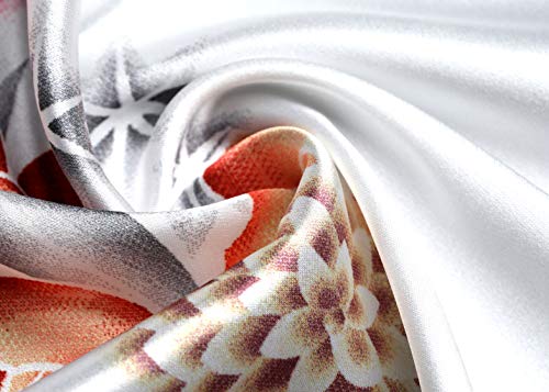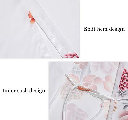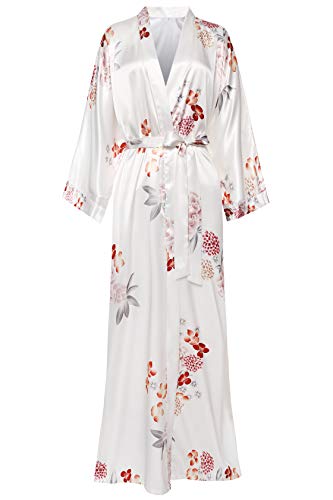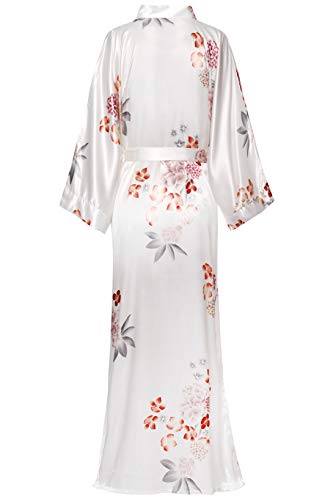 BABEYOND Kimono Floral Largo Bata Novia Kimono de Seda Túnica de Satén 1920s Ropa de Dormir Despedida de Soletera 135cm/53(Flor Blanca)