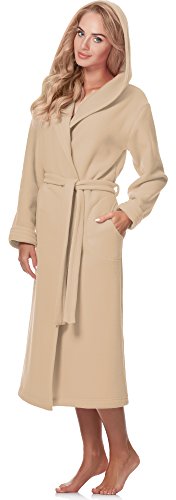 - Bata larga para mujer; Bata para la casa; Capucha, cinturón y dos bolsillos; Muy ligera y cómoda