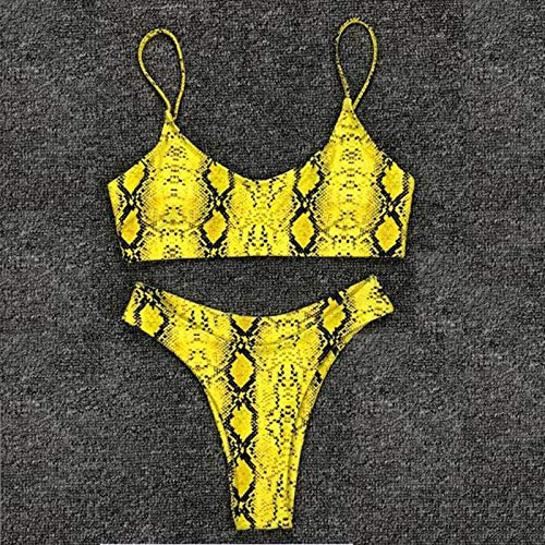 Mujeres Conjunto de Bikini Push-up con Estampado de Serpiente de Leopardo Sexy Trajes de BaƱo de Micro Tanga con Parte Inferior Triangular de Cintura Alta de Dos Piezas Bikini de Playa (H,M)