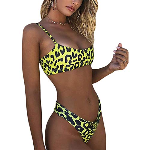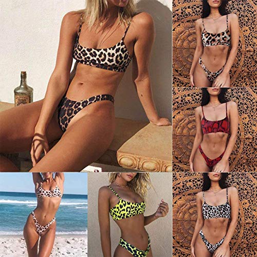 MU2827924 Bikini de Dos Piezas con Tirantes de Leopardo, Sexy Bikini con Estampado de Leopardo, Elegir un Regalo Playa,H,M