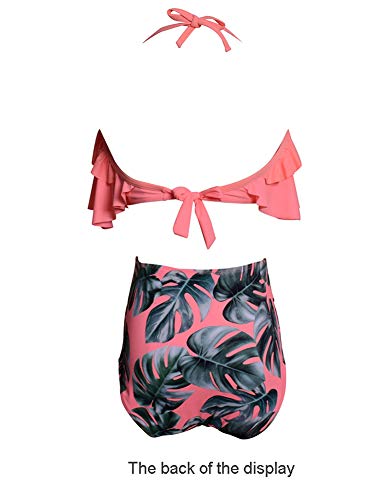 Traje de baƱo Dividido para Mujer Bikini Conjunto de Dos Piezas Traje de baƱo con Volantes Estampado de Cintura Alta-H-M