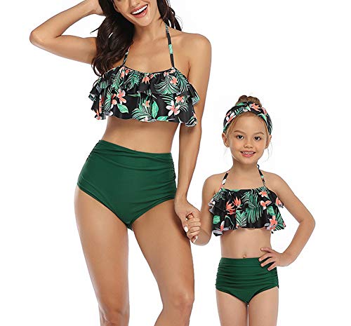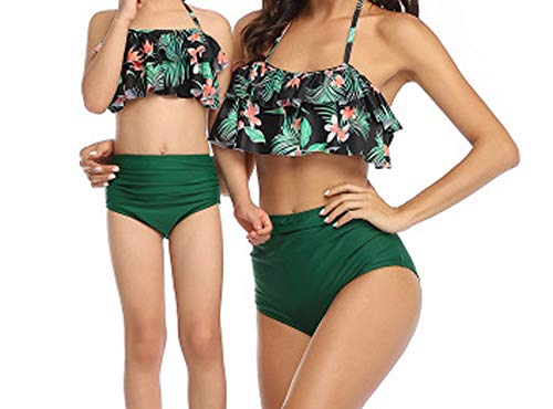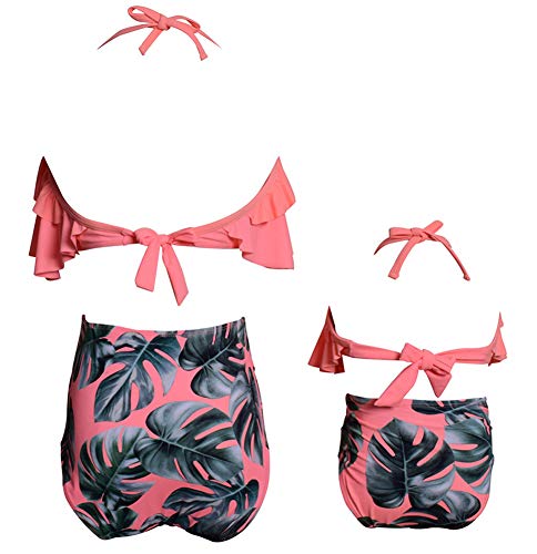 Traje de baƱo para Padres e Hijos Bikini Mujer + NiƱa Dos Juegos de Traje de baƱo Estampado de Cintura Alta con Hoja de Loto para Madre e Hija-H-M