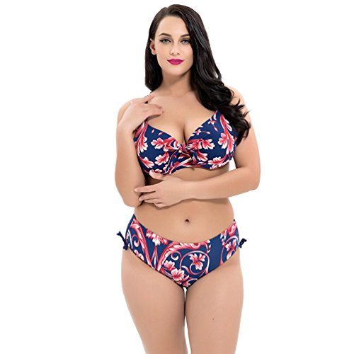 Baymate Mujer Bikini Talla Grande Impresión de Flores Traje de baño Push up HÔlter Bañador (Rojo, Tamaño 56)