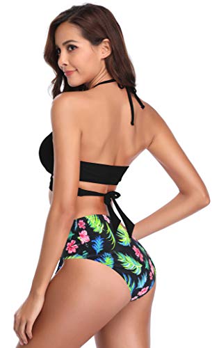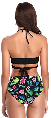 Bikini Talle Alto Halter Push Up Mujer Lunares Trajes de BaƱo Flores de Dos Piezas Biquini Braga Alta Vikini BaƱador Piscina Playa Trikini Conjunto de Bikinis Cintura Alta SeƱora Natacion Rojo M