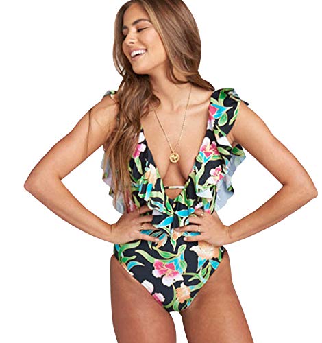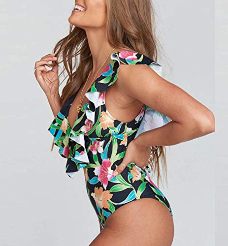 Trajes de BaƱo Mujer BaƱador Vientre Plano Escote V Una Pieza BaƱadores Playa Natacion Mujer con Volantes Bikinis de Flores con Relleno Monokini Bikini Triangulo Push Up SeƱora Enteros Biquini XL