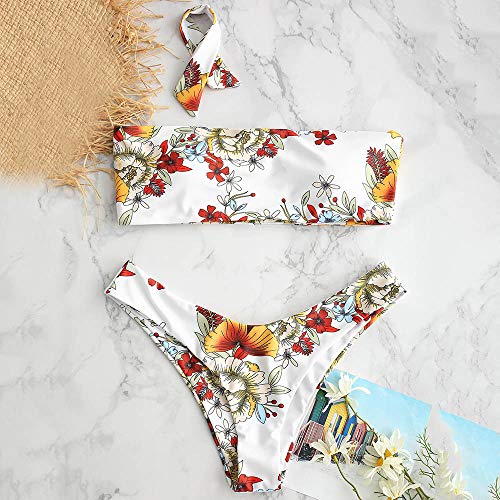 CHARMMA Conjunto de Bikini Estampado Bandeau con Nudo Delantero Dos Piezas Set Traje de BaƱo Verano 2019 Blanco L