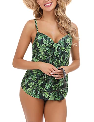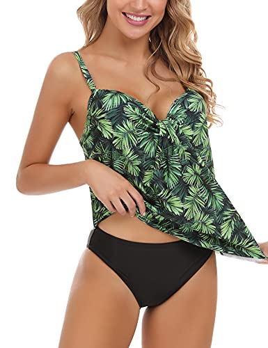 TUDUZ Mujer Tankini De Dos Piezas Bikini Talla Extra Floral Impreso Conjunto De Trajes De BaƱo (Negro.b, L)