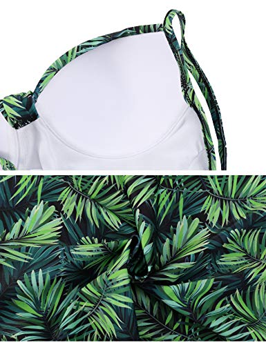 Akalnny Conjunto Bikini Mujer Dos Piezas Estampado Falda Verano para Playa Ropa de BaƱo Floral Dama Sin Manga Tirante Talla Grande S-XXL Volante Flounce(Hoja Verde,S)