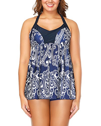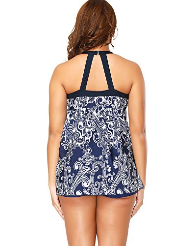 BaƱador con Falda Traje De BaƱo De Dos Pieza Tallas Grandes para Mujer Push Up Bikini Swimsuit Swimwear Tankini XL