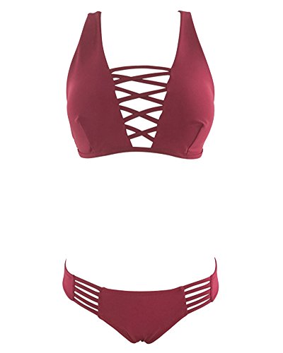 Mengmiao Mujer Push-up Acolchado Bra Bikini Trajes de BaƱo Tops y Braguitas Vino Rojo S