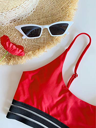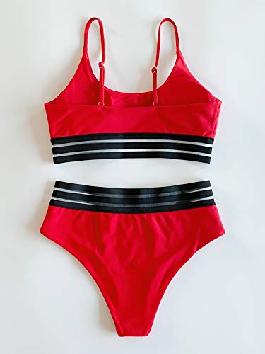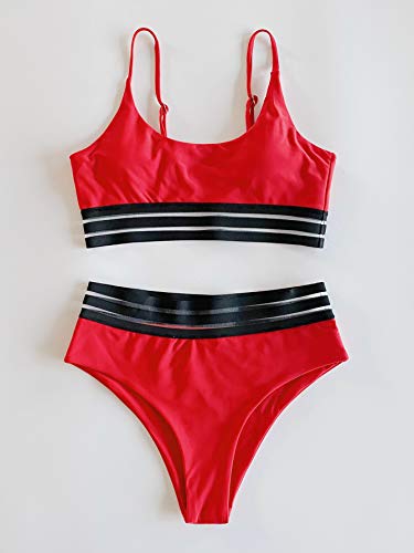 SOLY HUX Bikini para mujer con malla de 2 piezas, traje de baƱo de cintura alta, bikini rojo L