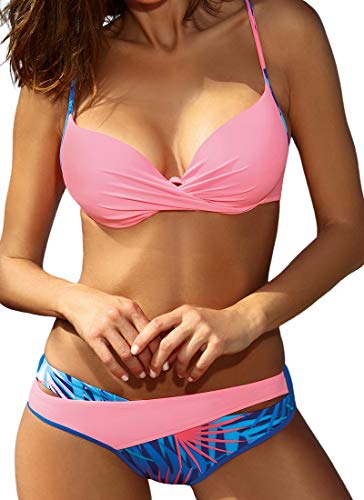 Fossen Bikinis Mujer 2021 BrasileƱos Push up - Estampado de Hojas Traje de BaƱo de Dos Piezas, BaƱador de Playa