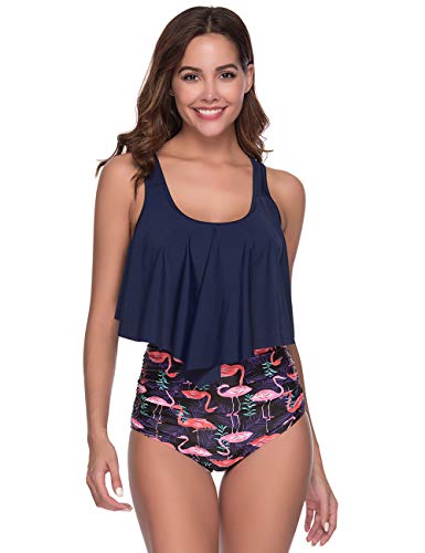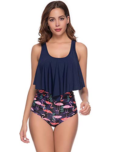 Sykooria Traje de BaƱo Mujer BaƱador Top Flounce Bikini Set Acolchado con Estampado Floral Cintura Alta Push up con Relleno Playa de Verano S-XL
