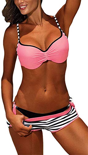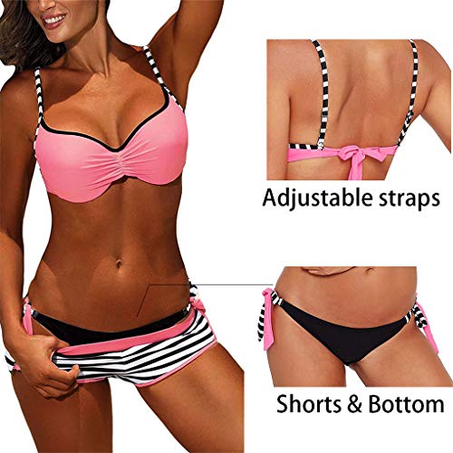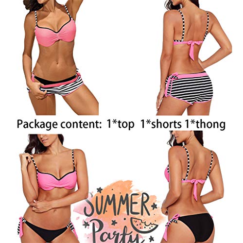 Yutdeng Mujer Trajes de BaƱo con Relleno Push Up Conjuntos de Tops de Bikini Tangas y Rayas Traje de BaƱo Bragas Sexy 3 Piezas para Playa Natacion Piscina