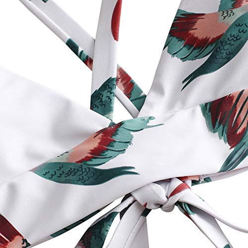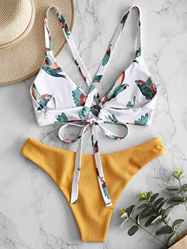 ZAFUL Conjunto de Bikini con Relleno Push Up Triangular Busto Ajustable con Tirantes Cruzados Traseros Estampado Talle Bajo (PƔjaro-Amarillo, L)