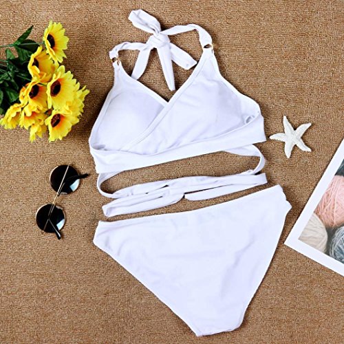 SHOBDW Conjunto de Mujeres Bikini, Sexy Push-up Rellenado Traje de baƱo Vendaje de Ropa de Playa (Blanco, M)