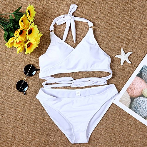 SHEKINI Bandeau Twist Halter para Mujeres Bikini Trajes de baƱo Parte Inferior del Anillo (XL, Blanco)