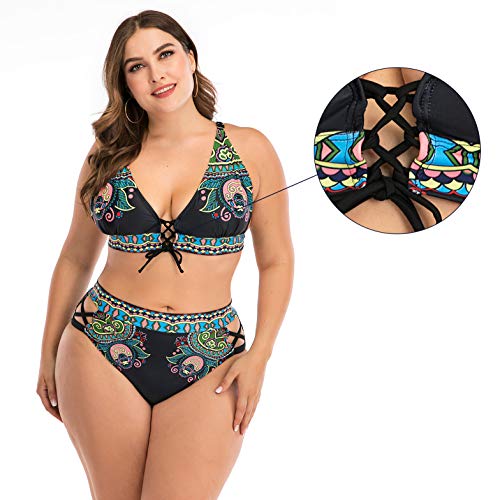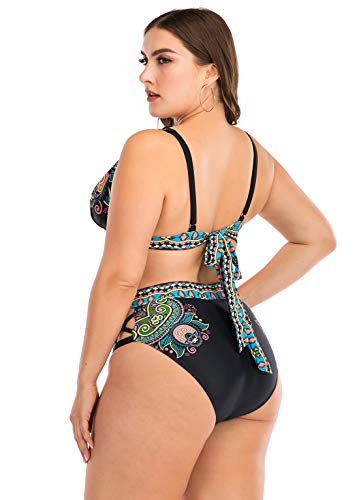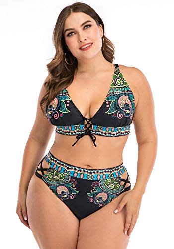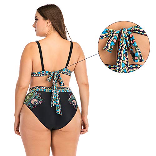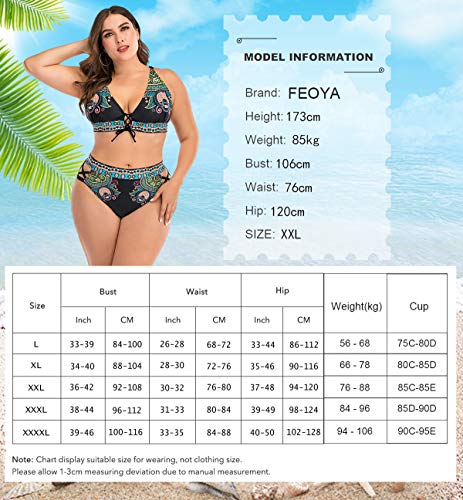 FEOYA - Bañador de Mujer Tallas Grandes con Aros Push up Conjunto de Bikini Reductor Atractivo ElÔstica Playa Vacación Traje de Baño
