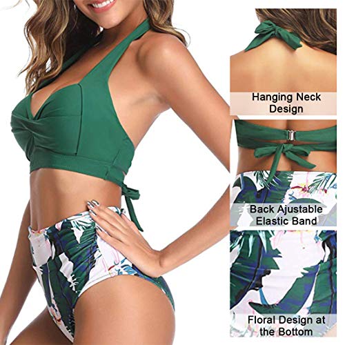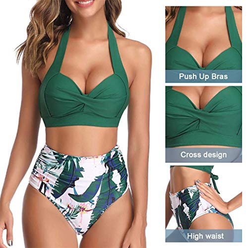UMIPUBO Conjuntos de Bikini para Mujer Cintura Alta Push Up Traje de baƱo de Dos Piezas Cuello Halter Tirantes con Retro Ropa de Playa