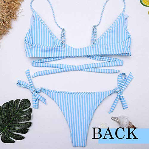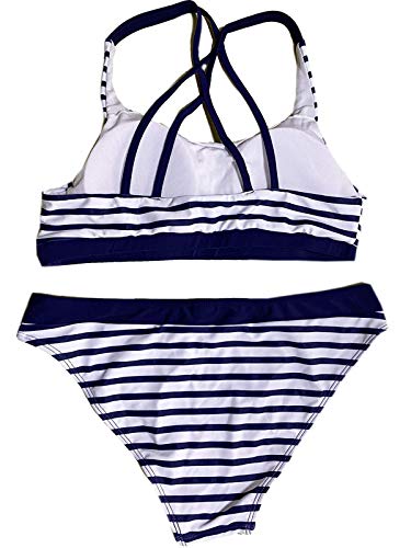 Voqeen Mujer Bikini Rayas Cabestro Traje de baño Acolchado Ropa de Playa de Dos Piezas