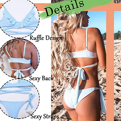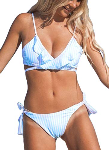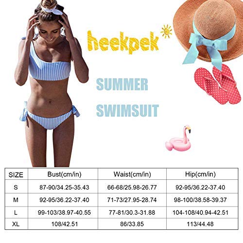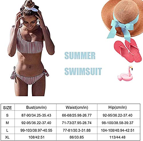 heekpek Bikini a Rayas Mujer Top Push Up Relleno Braga con Lazos Traje de Baño Playero Bañador de 2 Piezas Biquini Playa Tallas Grandes