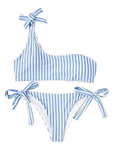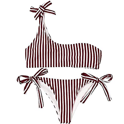 heekpek Bikini Trajes de baño a Rayas con un Hombro Pajarita Cintura Alta Tanga Lado Anudado Bañador Atractivo de Dos Piezas Sexy Trajes de baño