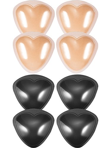Hestya 4 Pares de Almohadillas de Sujetador Rellenos Autoadhesivos Insertos de Pecho de Push Up para Bikini, Forma de TriƔngulo, Negro y Beige