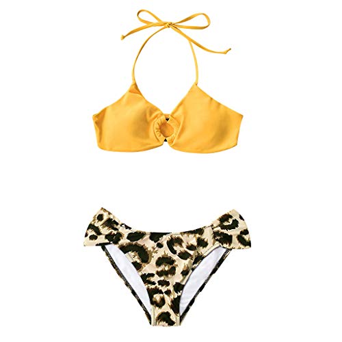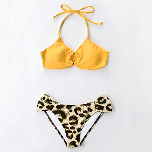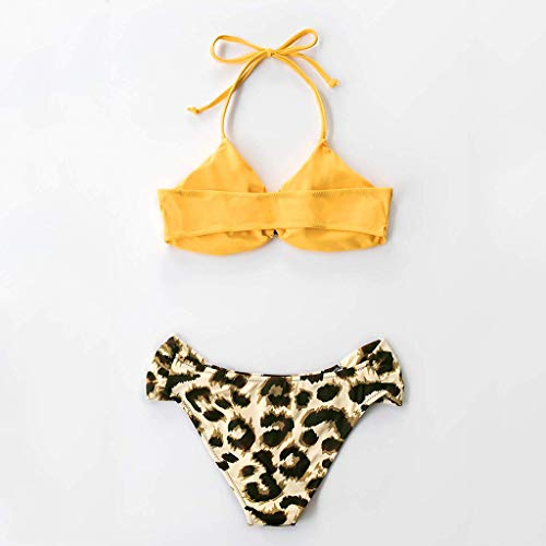 Sylar Bikinis Mujer 2020 Push Up con Relleno Conjunto de Bikini Cuello Halter Traje de Baño de 2 Piezas Leopardo Bañadores de Natación Dividido Biquinis Top Bra Almohadilla Ropa de Playa L