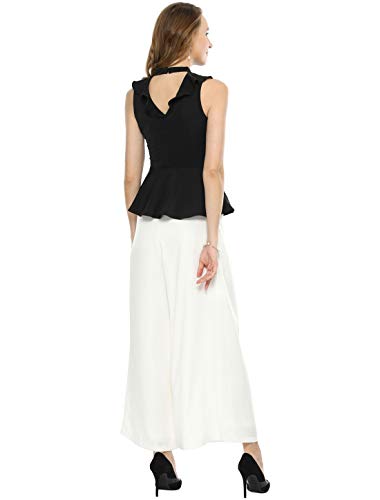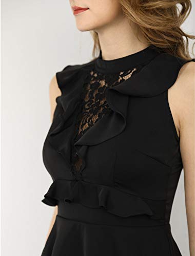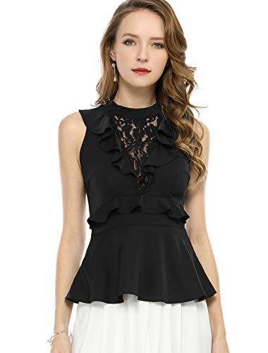 Allegra K Blusa Top Sin Mangas De Peplum Recorte De Espalda Cuello Halter Frente De Encaje Floral con Volantes para Mujeres Negro XL